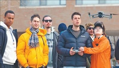 3月23日,意大利學員在天津現代職業技術學院學習無人機應用技術。天津現代…